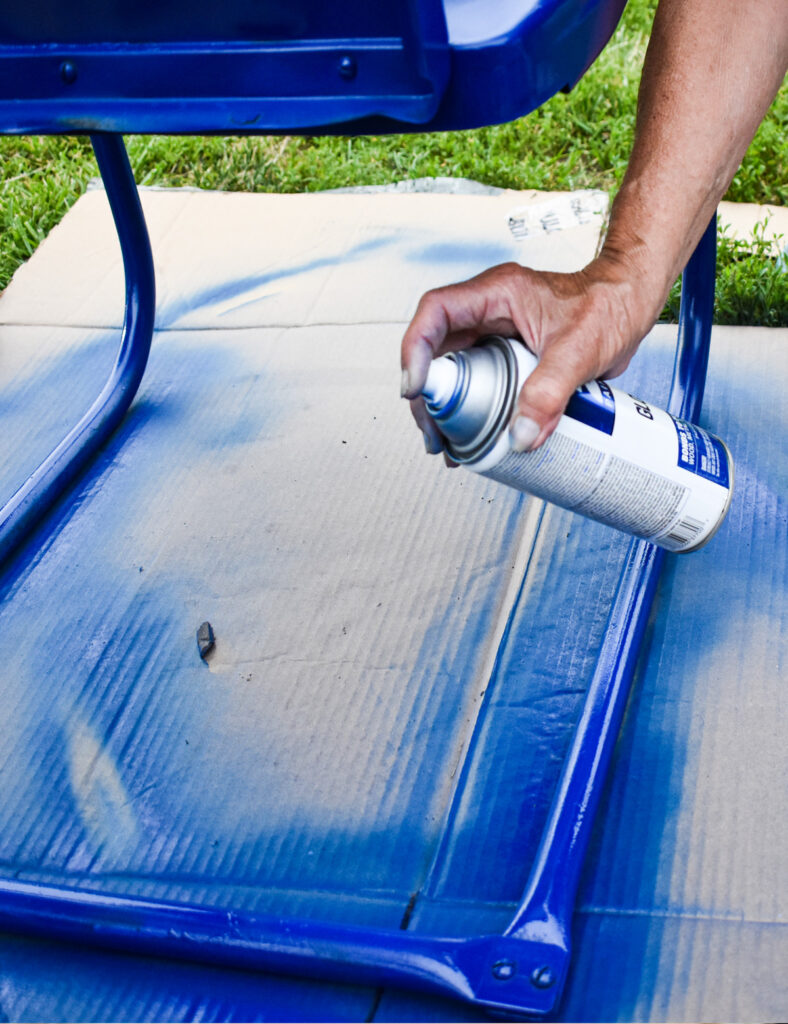 - Spray from about 8-12 inches away to avoid overpainting; the goal is several light, even coats – NOT a fully drenched-in-paint patio piece.